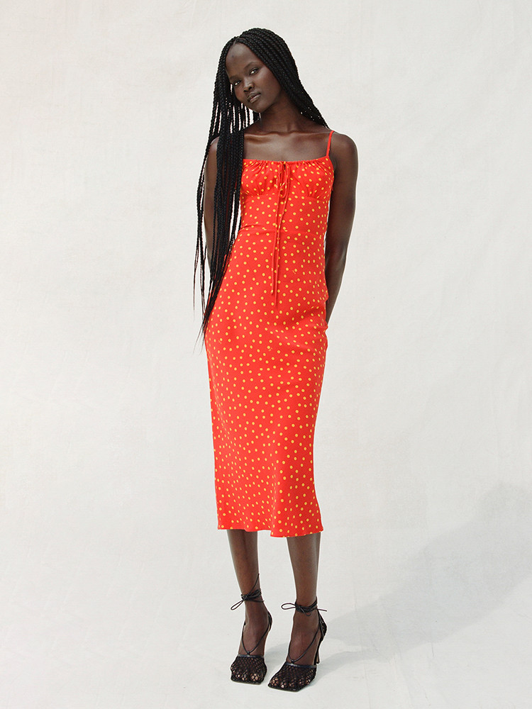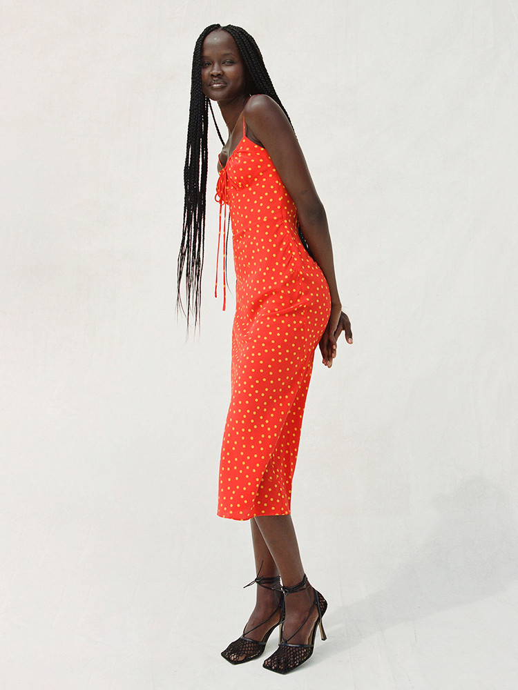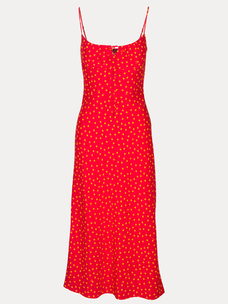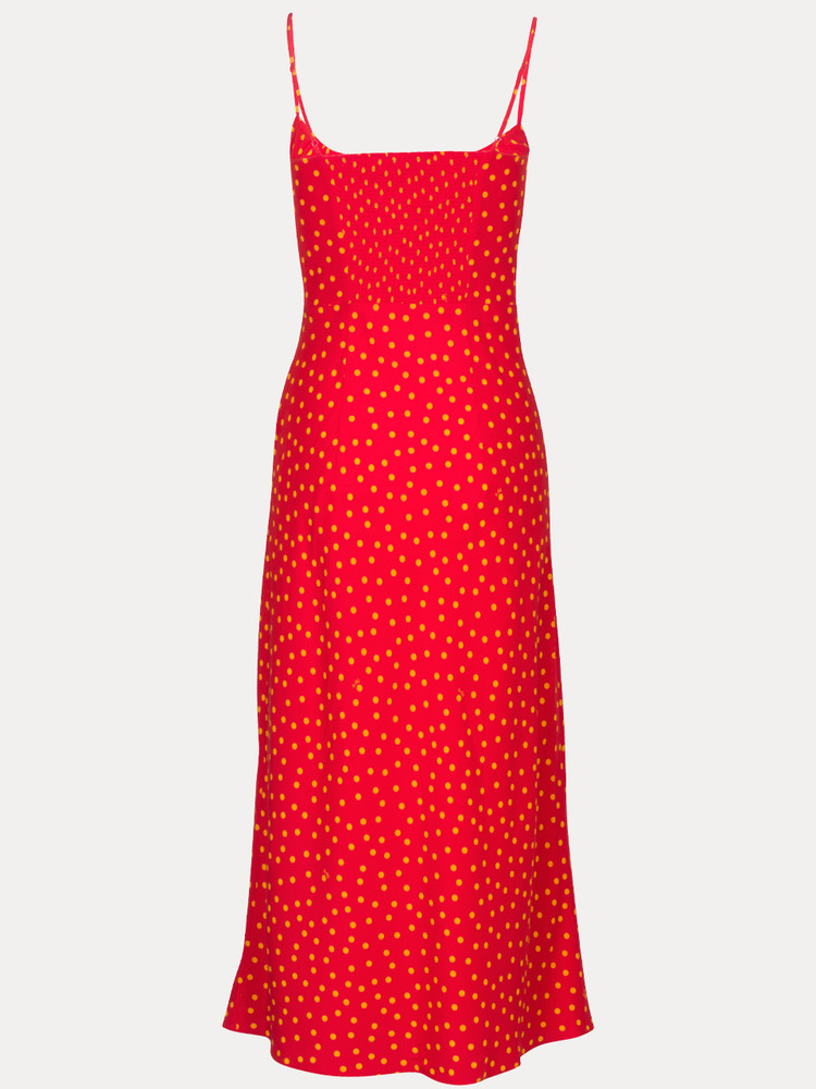 - Original 'Rossa' red and yellow polka dot print, designed by Réalisation