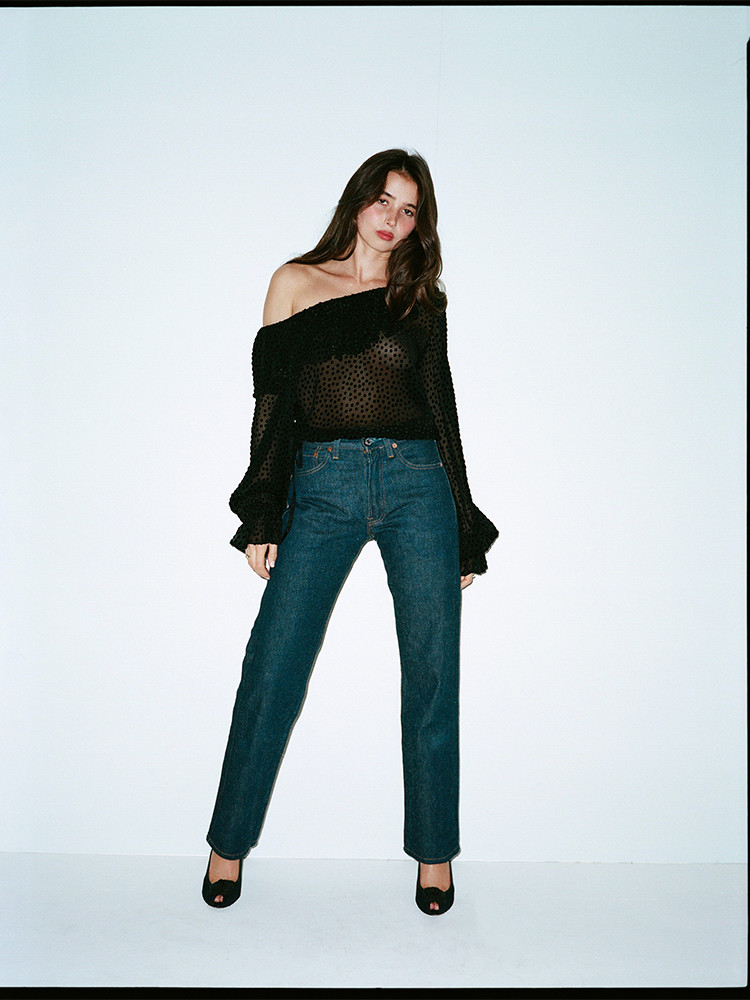 You always want that one piece in your wardrobe that can fall effortlessly off your shoulder - and the Corinne does just that. Her sheer velvet devoré dot fabric gives her the allure of her French namesake. She’s just sexy enough to pull off that perfect sheer-top moment.